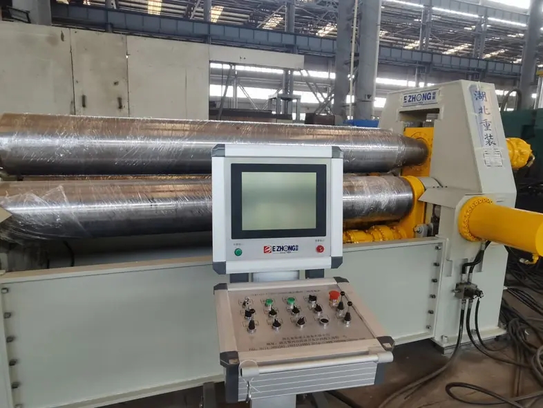 -這臺(tái)卷板機(jī)具有可變中心距和電液控制驅(qū)動(dòng)結(jié)構(gòu)。