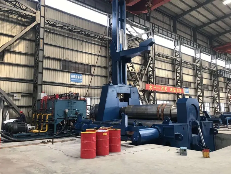 -當(dāng)卷板機與液壓夾具相結(jié)合時,它可以自動校正板材并促進點焊;